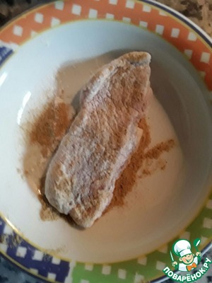 В отдельную посуду насыпаем муку и обвалакиваем в ней кусочки рыбы со всех сторон.
