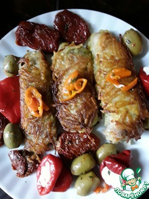 Пытаемся картошку немного выдавить в рыбу со всех сторон.