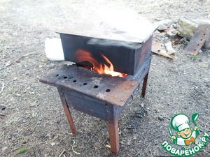 Сначала горели угли березовые. Их оказалось мало. Подкладывал дрова от срубленных деревьев, но они долго разгораются.