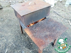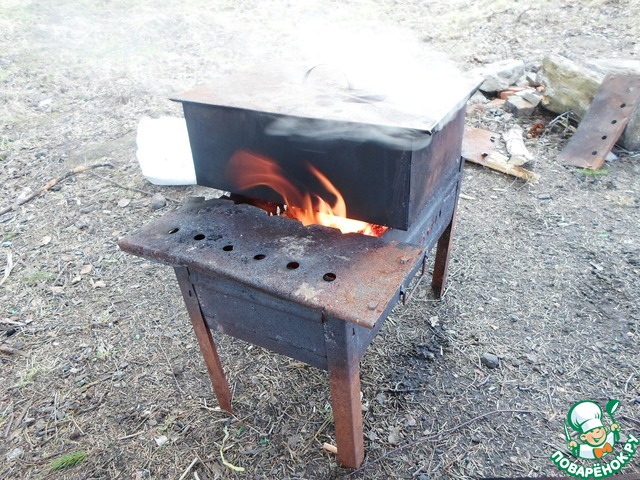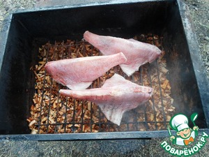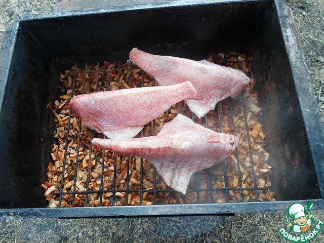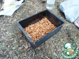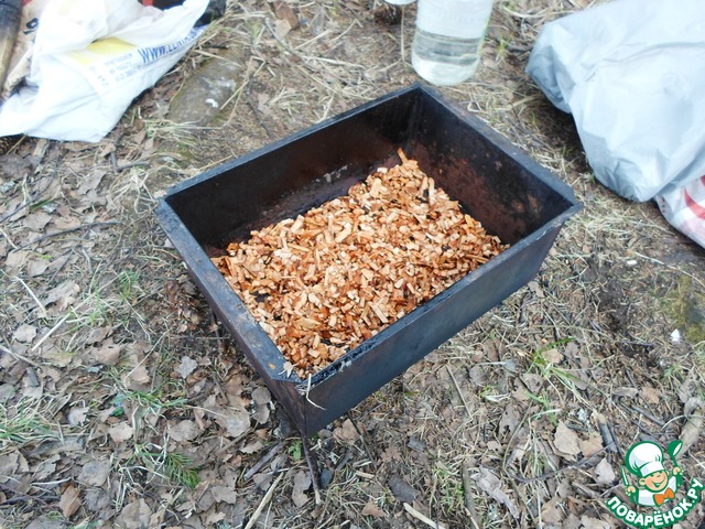 Для второй партии копчения, насыпал свежей щепы. Старая на половину почернела и никуда не годилась.