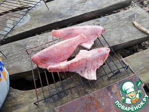Рыбу где-то пол-часа выдержали в соленом растворе.