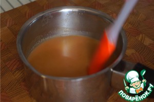 3. Готовим пропитку: воду соединяем с вареной сгущенкой, ставим на огонь, доводим до кипения, снять с огня, остудить.