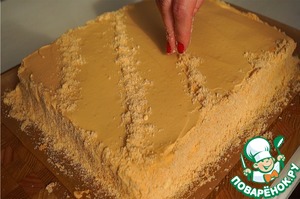 5. Собираем торт: коржи пропитать, далее смазать кремом. Верх и бока торта также промазываем кремом. Украшаем крошкой печенья. Убираем на пару часов в холодильник. Торт готов!
