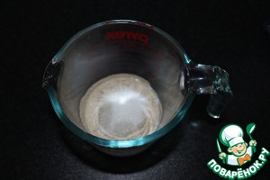 Готовим второе тесто. Смешать дрожжи с ложкой сахара и молоком (50-100 мл) и поставить в теплое место, чтобы опара немного поднялась.