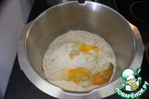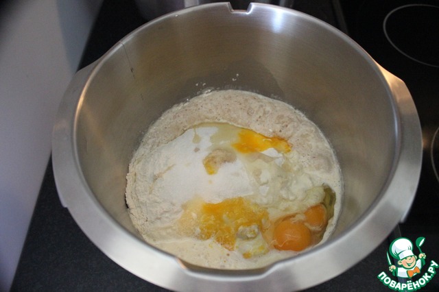 Потом к опаре добавить сахар, сливки, соль, 5 желтков, яйцо, муку и замесить тесто. Ориентироваться по муке. Рецепт чешский, то есть для чешской муки. Со своей норвежской мукой пришлось подстраиваться немного, чтобы тесто было не совсем сырым, но и чтобы не "перекормить" его мукой.