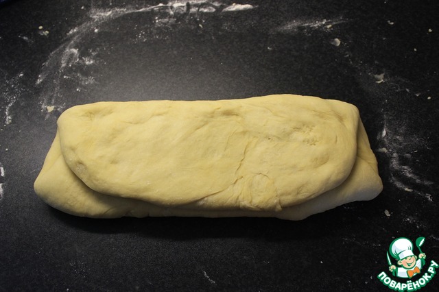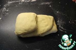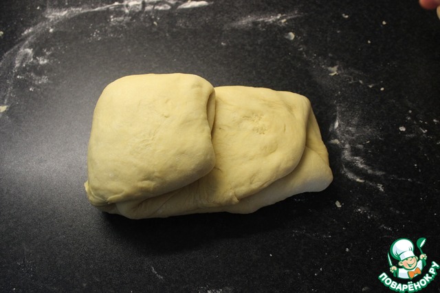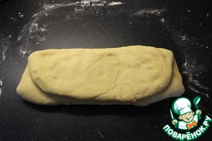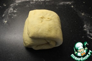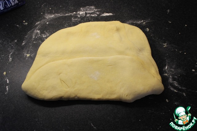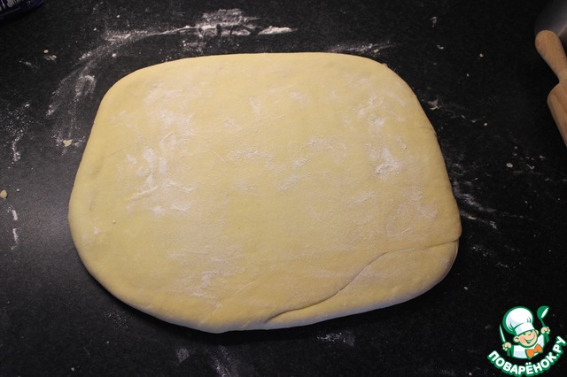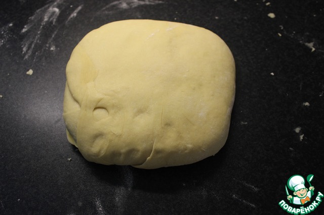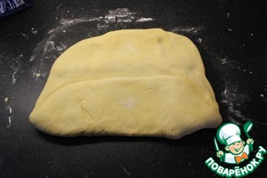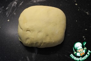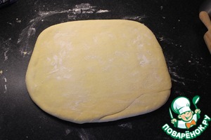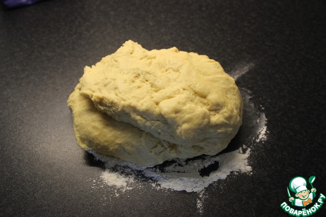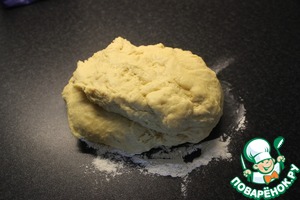 Выложить тесто на стол, слегка посыпаный мукой