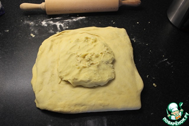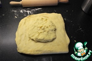 Раскатываем второе дрожжевое тесто и выкладываем в центр первое тесто.