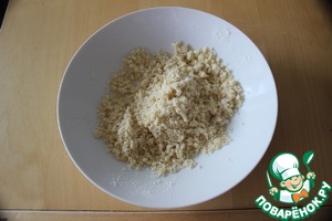 Теперь готовим первое тесто. Смешиваем сливочное масло с мукой.