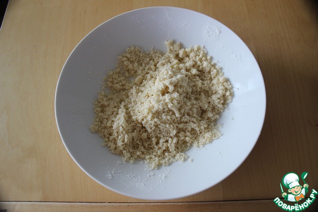 Для посыпки растереть руками сахар, масло и муку в крошку. Поставить в холодильник до использования, чтобы масло не растаяло.