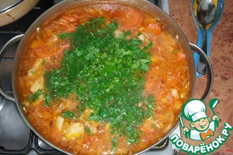 И подаем борщок вместе с "ушками", посыпав любимой зеленью!))