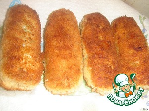 • Обжарьте крокеты до золотистого цвета в растительном масле, выложите на бумажное полотенце, чтобы промокнуть лишний жир.
