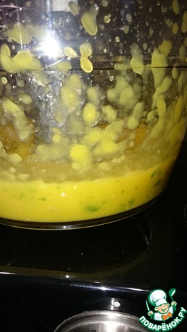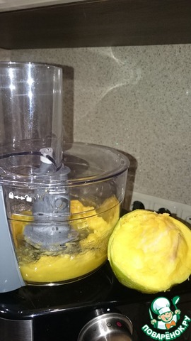 Манго разрезать, удалить косточку, очистить, нарезать небольшими кусочками и размять до состояния пюре. Я воспользовалась измельчителем в кухонном комбайне.