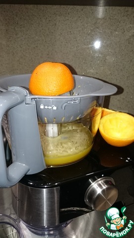 Из двух апельсинов выжать сок. Можно использовать и готовый сок из пакетов но учитывайте, что туда всегда добавляют сахар, а это значит, что ваша порция будет более калорийной!