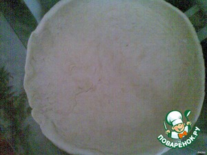 Охлажденное тесто порезать на 2 неравных куска. Раскатать в пласт толщиной 0,8-1 см и выложить на дно аэрогриля (или на противень духовки).