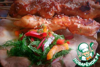 И натерла им 2-ю партию птичек, которых я предварительно также хорошенько полила соусом-маринадом "Терияки" от ТМ "Киккоман".