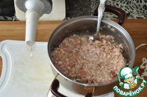 Для приготовления колбасок удобно использовать специальную насадку на мясорубке.