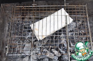 Кладём завертон на решётку и подрумяниваем на углях с обеих сторон по 1 минуте.