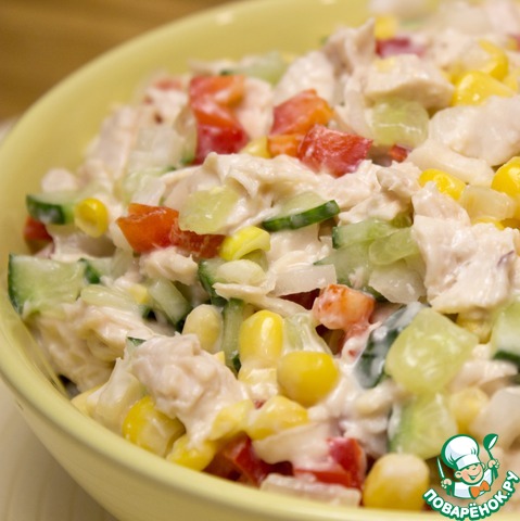 Рецепт «Салат с курицей и овощами «Калейдоскоп»»: