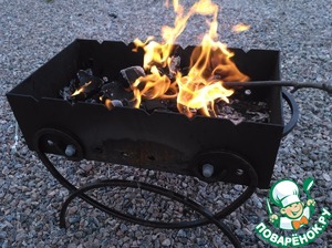 Разогреваем угли. Нам нужен большой жар, чтобы курица успела подрумяниться и при этом не стала сухой.