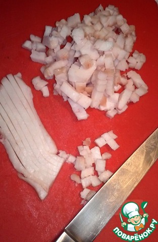 Нарезаем курдючный жир небольшими кубиками.