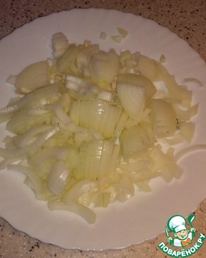 Нарезаем лук четверть-кольцами.