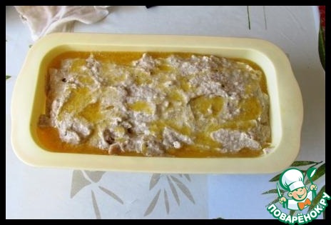 Включаем духовку на разогрев до 170 град. В силиконовую форму размером 20х10 вливаем 2 столовых ложки растопленного сливочного масла, отставляем в сторонку.