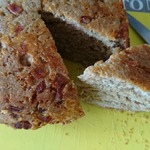 Нежный, ароматный, сытный хлеб с насыщенным вкусом копченого бекона и сыра. Твердая хрустящая корочка и мягкий пушистый мякиш. Замечательная хлебная основа для паштетов, мясной нарезки и густых соусов. Отличная вещь на пикнике! Всё делается очень быстро, тесто замешивается ложкой и сразу выпекается.