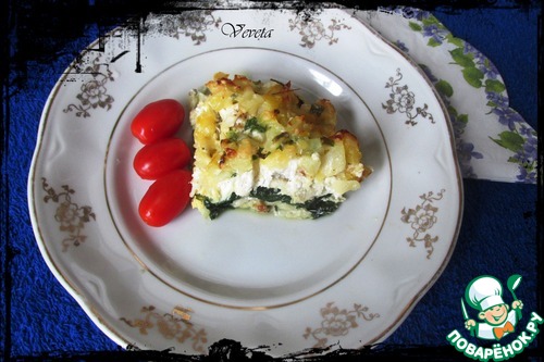 Воскресенье. Смотрю телепередачу "Барышня и кулинар". Барышня готовит запеканку с рыбой горячего копчения. Интересно. Тут вспоминаю, что в холодильнике скучает кусок зубатки горячего копчения. Почему бы не приготовить запеканку к обеду? Быстро метнулась в магазин за свежим шпинатом и приготовила. После приготовления поняла, что на мой вкус запеканка нуждается в некотором усовершенствовании. Предлагаю вам немного измененный рецепт вкусной и нехлопотной рыбной запеканки.