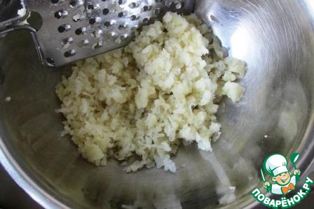 Картофель очистить и отварить до полной мягкости. Остудить и натереть на средней терке.