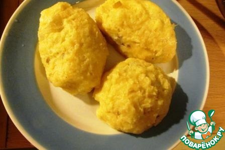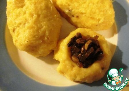 Всё тщательно перемешать, мокрыми руками слепить небольшие шарики, сделав в них углубления.