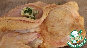 Вот так выглядит подготовленная 1-я половинка цыпленка.