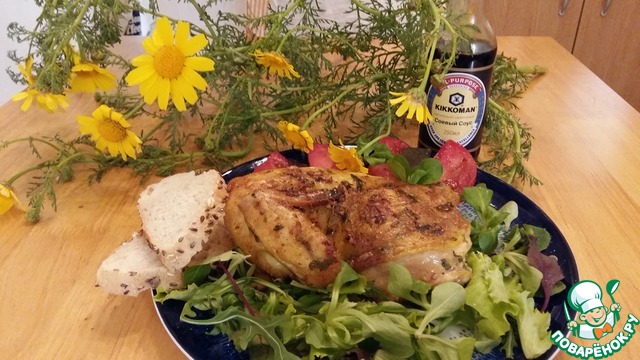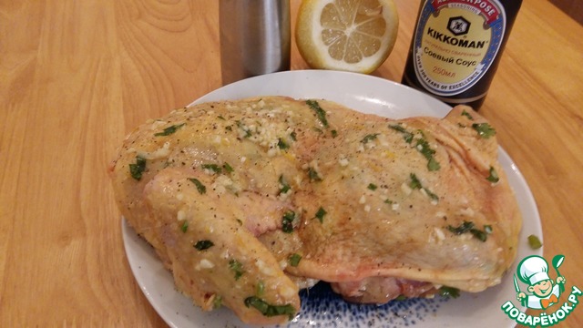 Обе части цыпленка хорошо полить соевым соусом от ТМ "Киккоман".