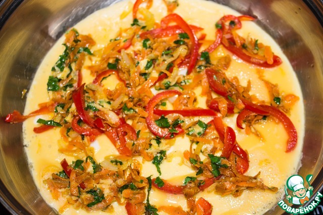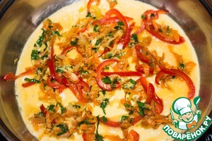 Яйца посыпаем обжаренными овощами с сыром.