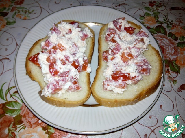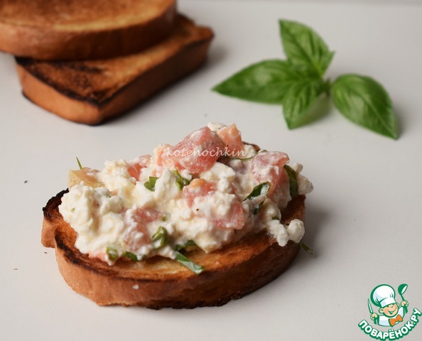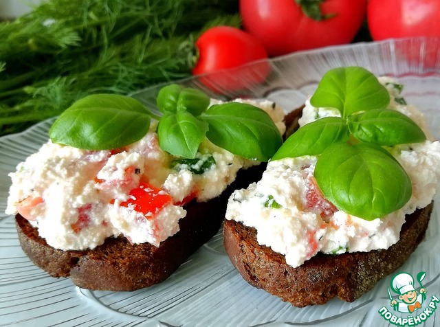 Шикарные бутерброды!!! Помидоры, творог, чеснок, базилик... Что может быть вкуснее? Моё любимое сочетание! Очень вкусно! У меня с ржаным хлебом. Спасибо большое, Максим!