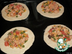 Противень смазать растительным маслом, положить половину кругов из теста.