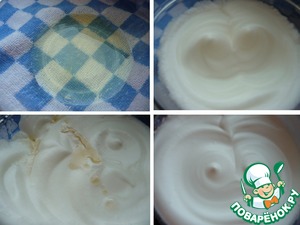 Сразу влить горячий сироп тонкой струйкой в белок и продолжить взбивать миксером около 5 мин.