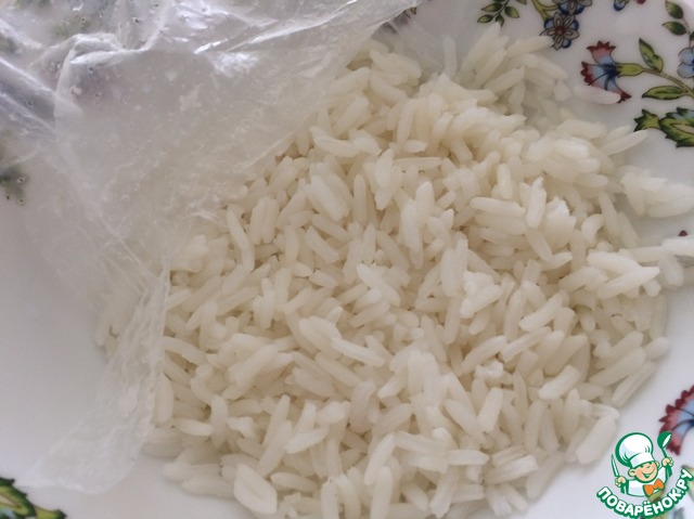 - Рис (Я использую пропаренный рис "Янтарь" от фирмы "Мистраль") — 1 пакет.