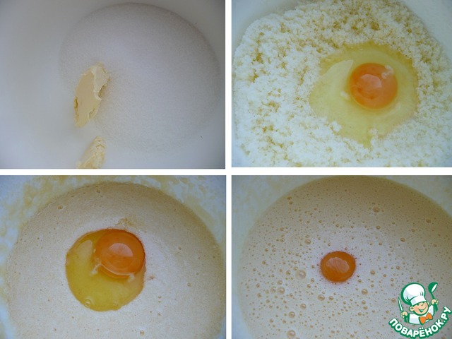 Мягкое масло взбить с сахаром и ванильным сахаром.