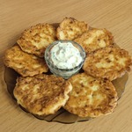 Готовые оладьи сервируем и подаем к столу со сметанным соусом. Приятного аппетита!