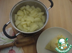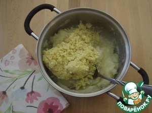 Из картофеля делаем пюре и выкладываем к нему пшено.