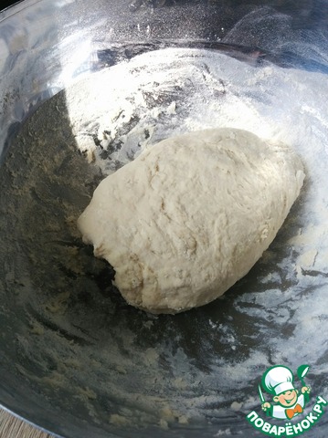 Затем постепенно добавляем мягкое сливочное масло, продолжая вымешивать тесто в течении примерно 10 минут, пока тесто не станет гладким и эластичным. Накрываем миску с тестом полотенцем и оставляем в теплом месте до удвоения объема.