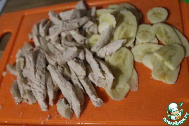 Я из той породы людей, которые любят эксперименты на кухне. Найдя какой-нибудь неординарный рецепт, мне сразу же хочется его испытать. Сегодня предлагаю Вам попробовать салат из курицы с необычным соусом на основе банана. Это очень оригинально и вкусно!