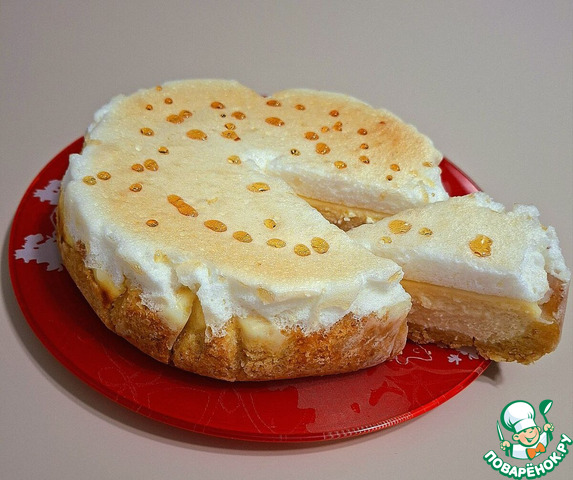 Предлагаю рецепт волшебного пирога "Слезы Ангела". При остывании на поверхности появляются янтарные капельки. Основой является нежное песочное тесто, далее - тающий во рту творожный слой, и сверху - воздушное белковое суфле, на котором и образуются "слезы ангела". Можно смело подавать тем, кто не любит творог, т. к в этом пироге он совсем не чувствуется и больше похож на крем.