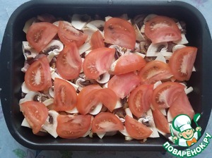 Шампиньоны промыть, нарезать и разложить следующим слоем