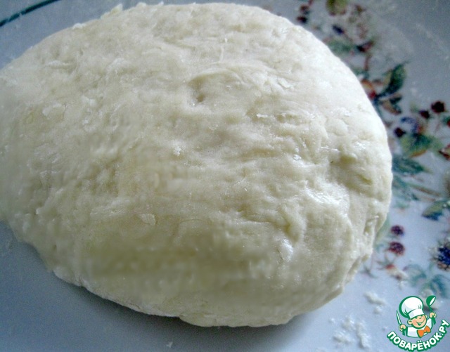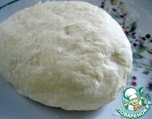 Влить жидкую смесь в сухую, добавить растительное масло и замесить тесто. Тесто должно получиться эластичным и почти не липнуть к рукам. На 30 минут отправляем в холодильник.