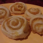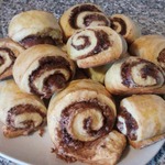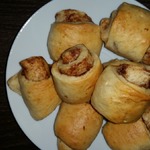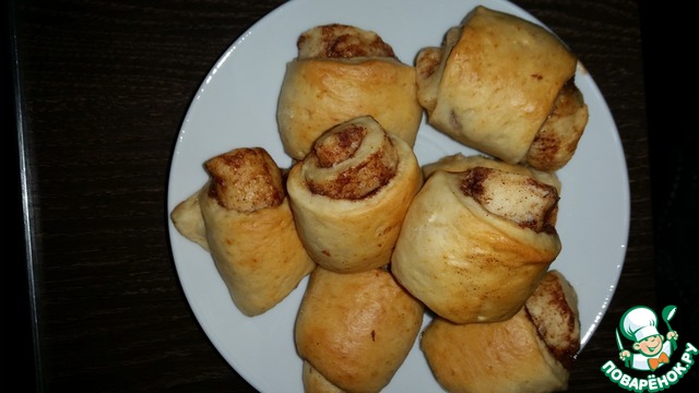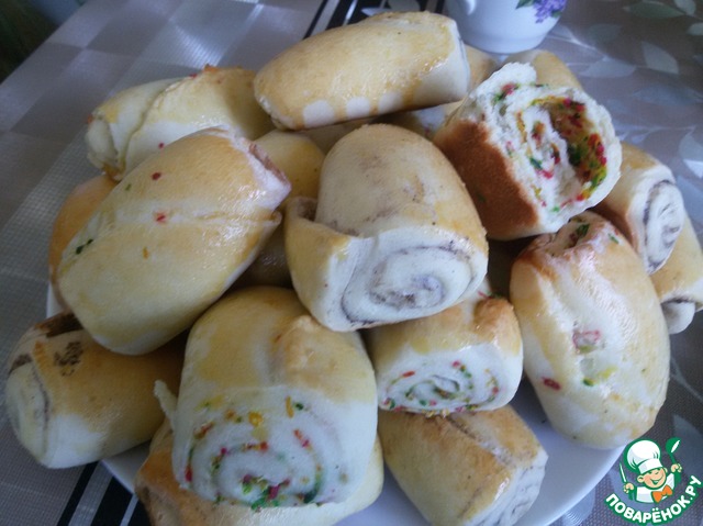 Единственно, я очень тонко раскатала, буквально 1 мм. Потом посмотрела на Ваши фото к рецепту, у Вас тонко, но не настолько. Из-за этого получилось чуть суховато сверху, но мягко внутри. В следующий раз так тонко раскатывать не буду. Рулеты резала на небольшие кусочки (мне сладкого нельзя, но очень люблю. Поэтому позволяю себе только маленькими порциями). Яйцом не смазывала.