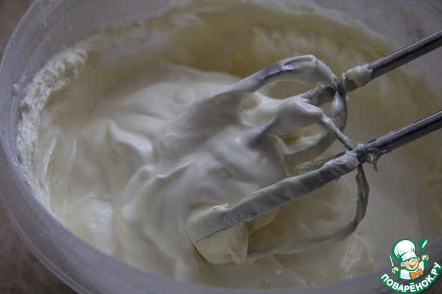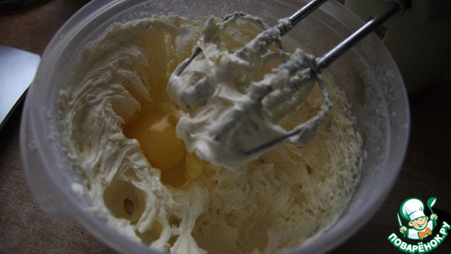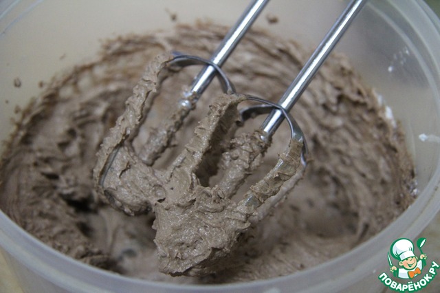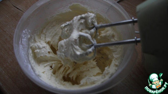 • Мягкое масло взбить с сахарной пудрой до кремообразного состояния.