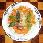 Нежная, сочная, невероятно ароматная рыба. Очень летнее, свежее блюдо. Как приятно после трудового дня, побаловать себя бокалом вина с нежной, таяющей во рту рыбкой, дополненной овощами и рассыпчатым рисом. Приятного аппетита! За идею этого блюда, благодарю Нику Белоцерковскую.