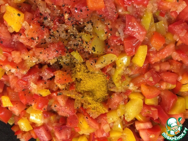 Посолить, поперчить, выжать немного лимона, добавить куркуму, все перемешать и протушить минут 5, если Вы хотите больше соуса, добавьте горячей воды.