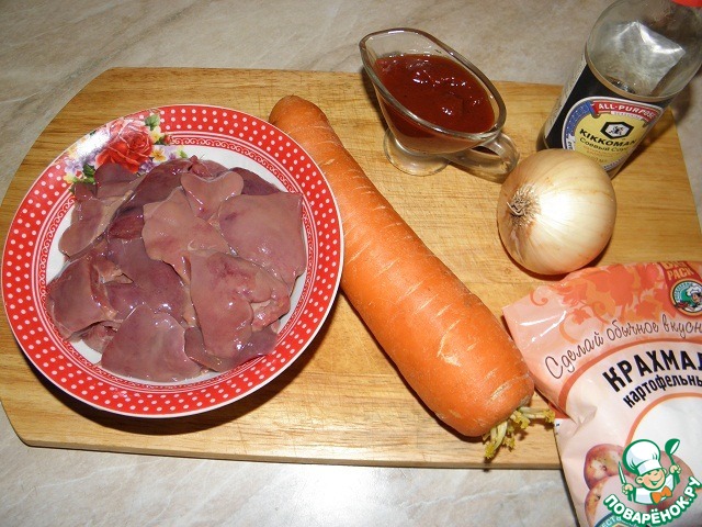 Ингредиенты для «Куриная печень в томатной подливе»: